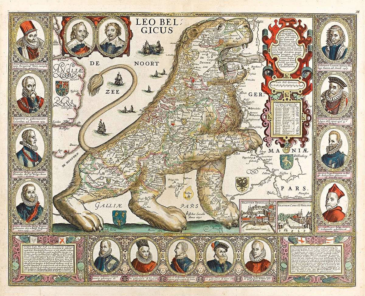 Older name as written by LEO BELGICUS THE LION MAP OP HOLLAND BELGIUM STRADO, from 1632.